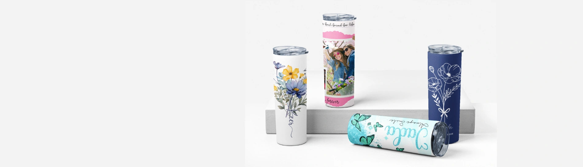 Celebrate every sip with personalized tumblers, mugs, and glass cups crafted to reflect your style. From timeless florals to custom photo designs, each piece is made to inspire joy, creativity, and everyday moments worth remembering.
