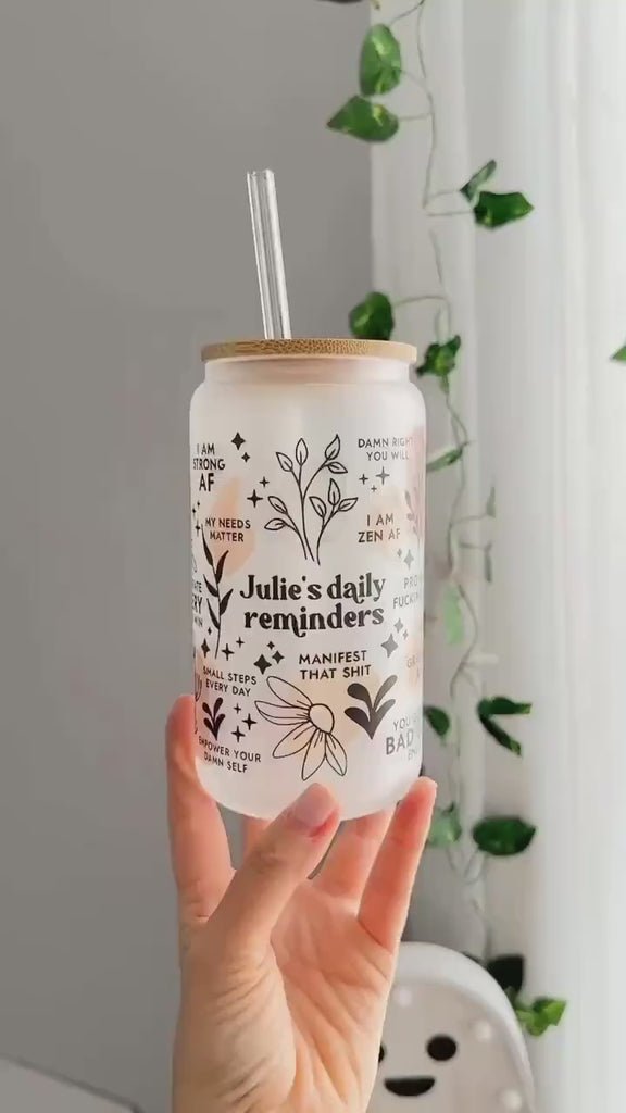 Start every day with a dose of inspiration! This personalized glass cup features your name and uplifting daily reminders designed to boost confidence, positivity, and self-love. Whether you're sipping iced coffee or a fresh juice, this cup is your daily motivation in a glass.
