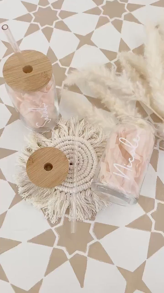 Start your day with a cup that’s as unique as you are. This personalized iced coffee glass can is the perfect mix of style and function. With your name elegantly printed on a sleek frosted glass and paired with a natural bamboo lid and clear glass straw, every sip feels extra special.